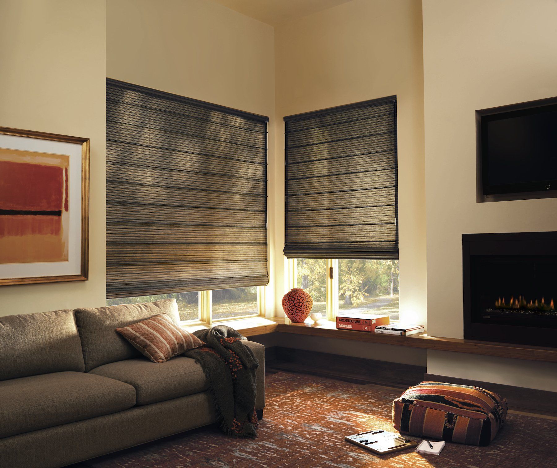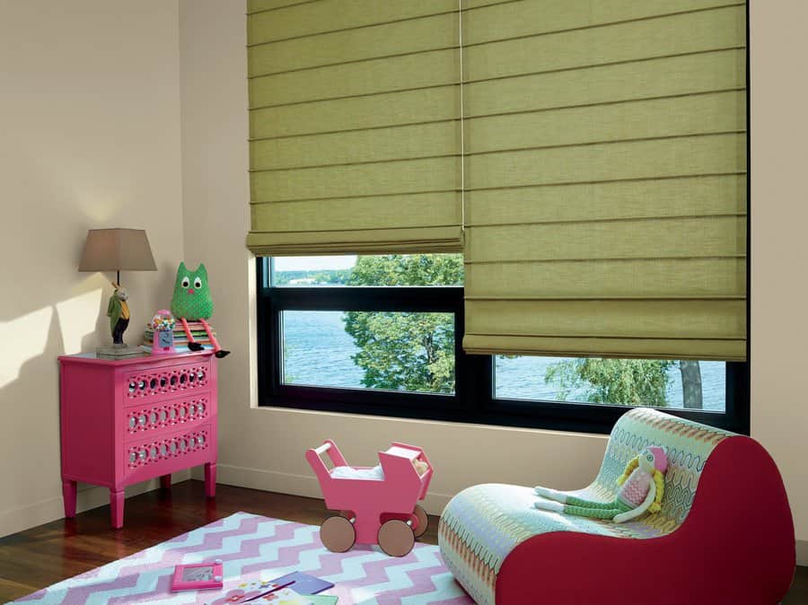 Expertly crafted to order, Design Studio™ Roman Shades are available in over 250 fabric swatches and four distinct Roman shade styles, including Batten Front, Batten Back, Hobble and Flat. Decorative tapes, trims and valances finish off the look.