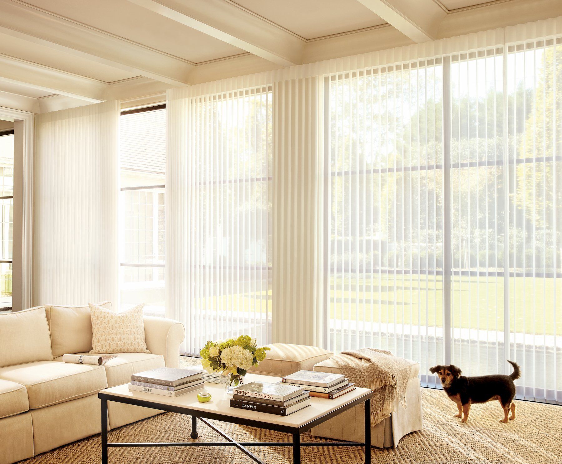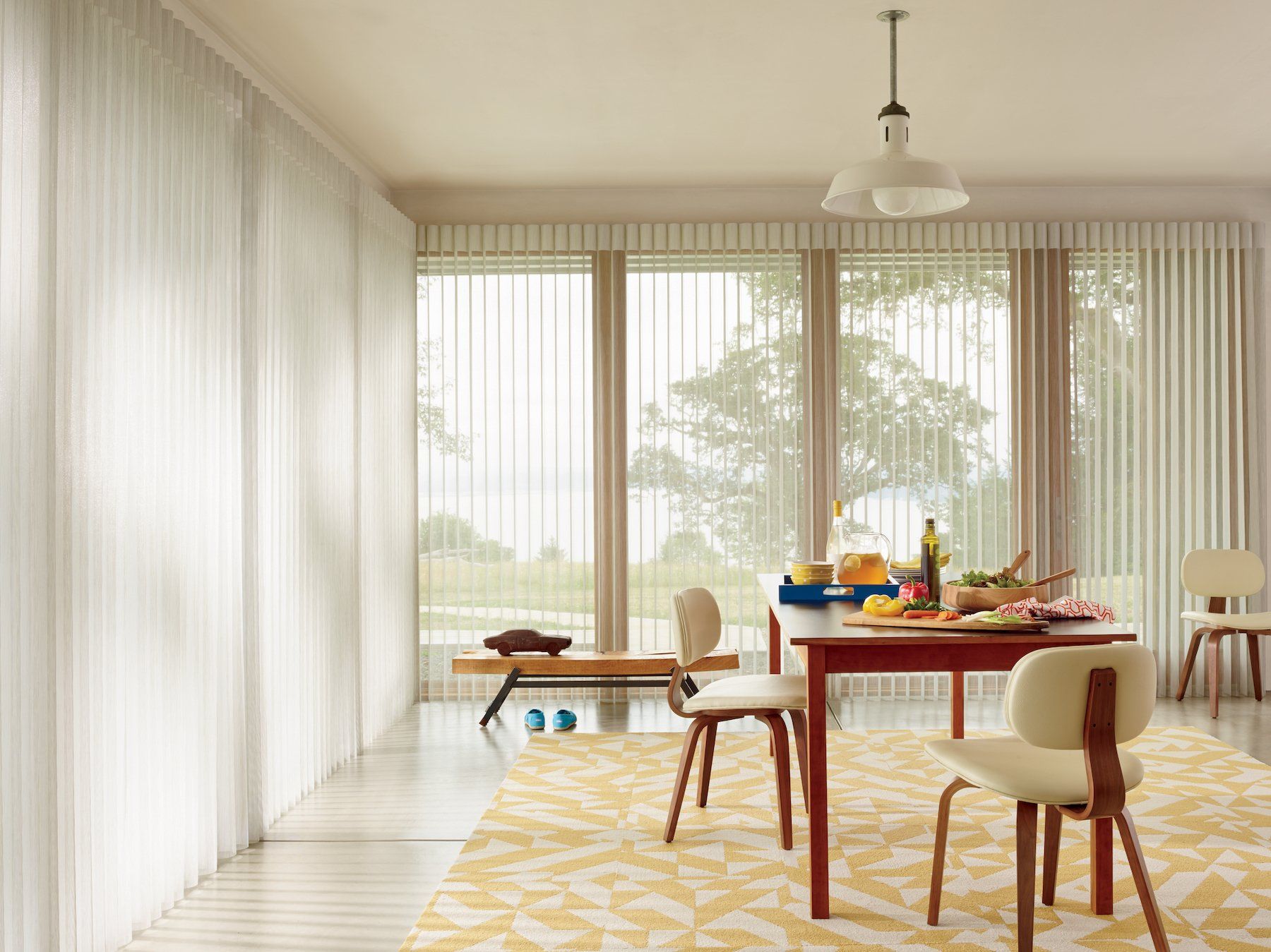 Luminette® Privacy Sheers combine a sheer fabric facing with soft, vertical rotating vanes affixed to the back of the sheer. They provide the ethereal beauty of sheer drapery panels along with variable light control and privacy, and are the perfect choice for wide expanses of glass, sliding doors, and other vertical applications.