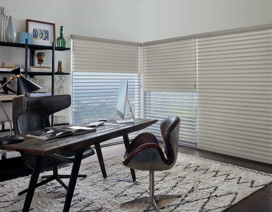 The S-shaped vanes of Silhouette® Window Shadings are an engineering triumph that we’re proud to call our own. The vanes appear to magically float between two sheer panels to create an elegant shading with beauty and brains. With the vanes open the sheers provide light diffusion and daytime privacy, while still allowing you to see out the window. Simply adjust the vanes for greater light deflection and privacy.